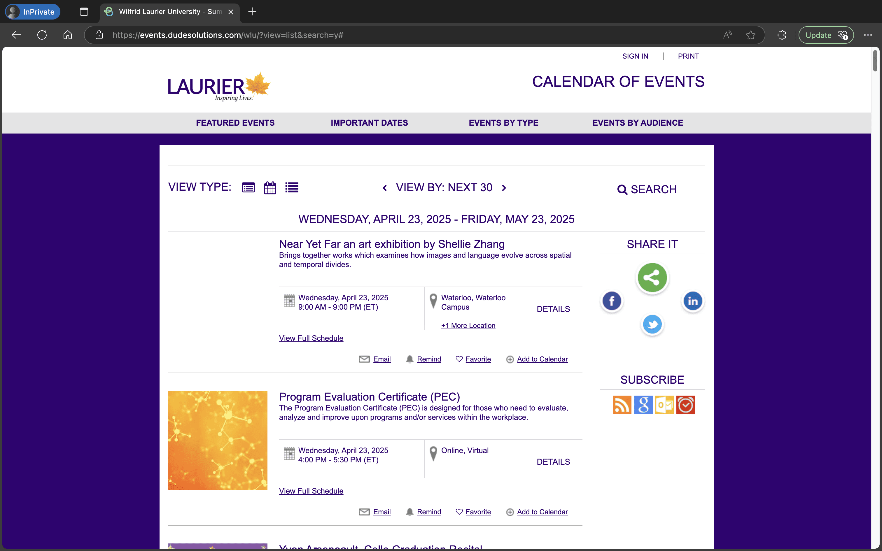 Multiple Laurier’s Official Event Sites