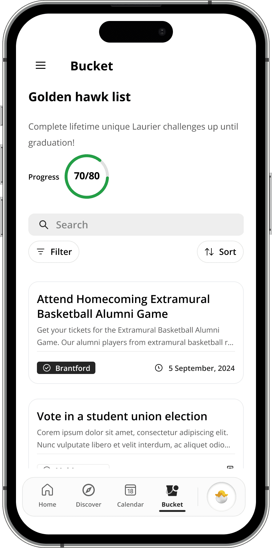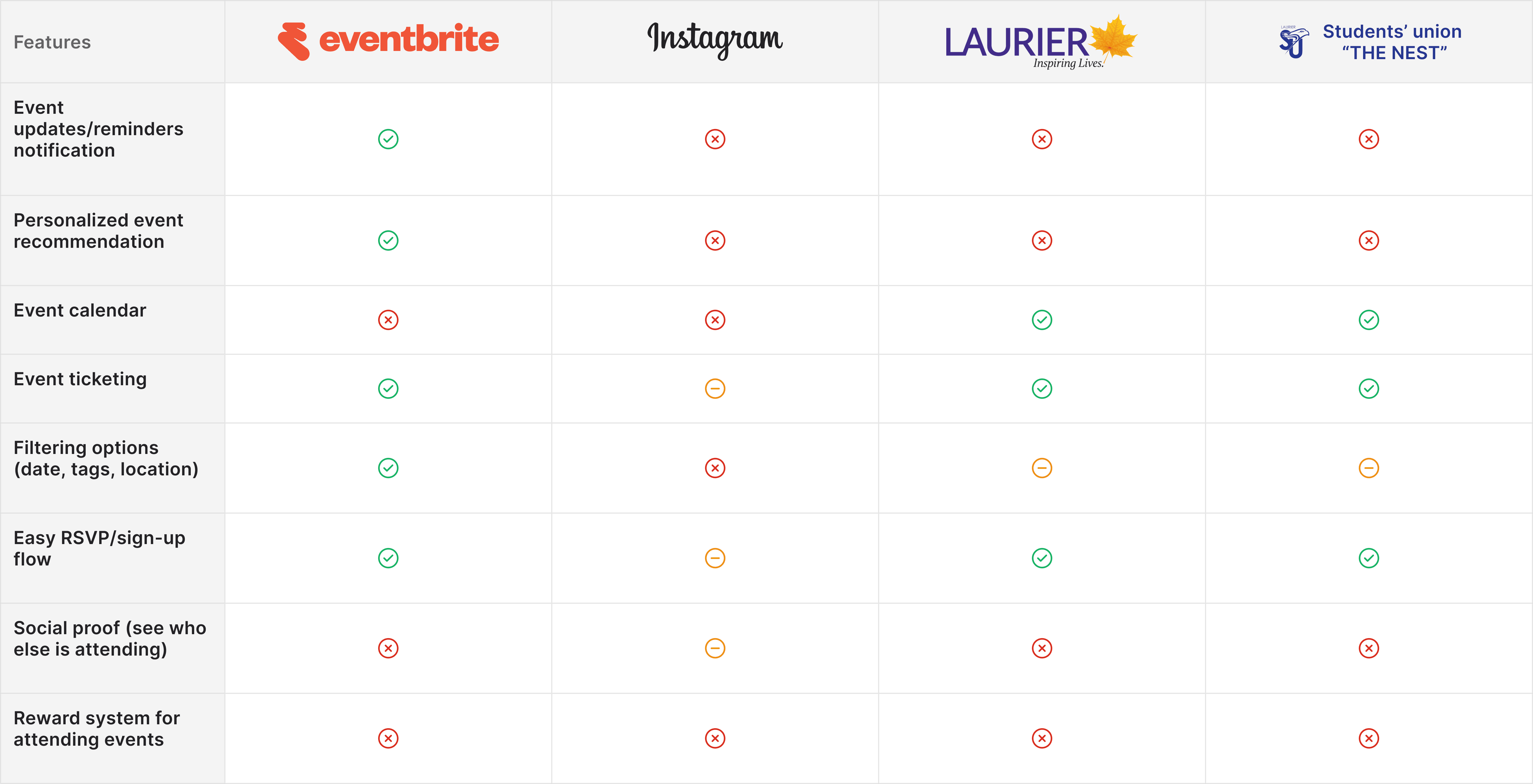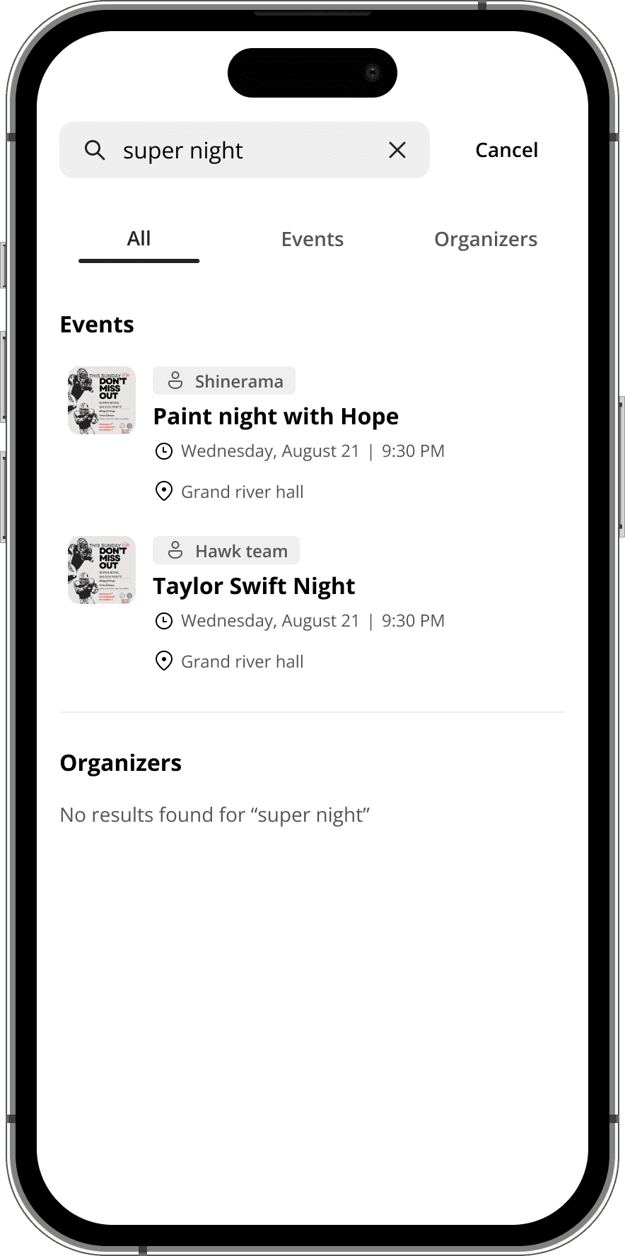 Event information was siloed, scattered across multiple platforms, and difficult to find. Even when students did come across events, there was no easy way to track or save them, leading to low engagement.