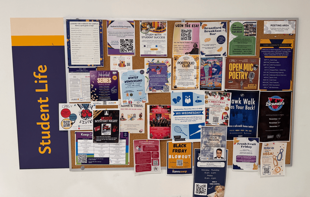 Overcrowded and visually overwhelming—too many posters in one place meant students either skimmed past them or didn’t absorb the information.
